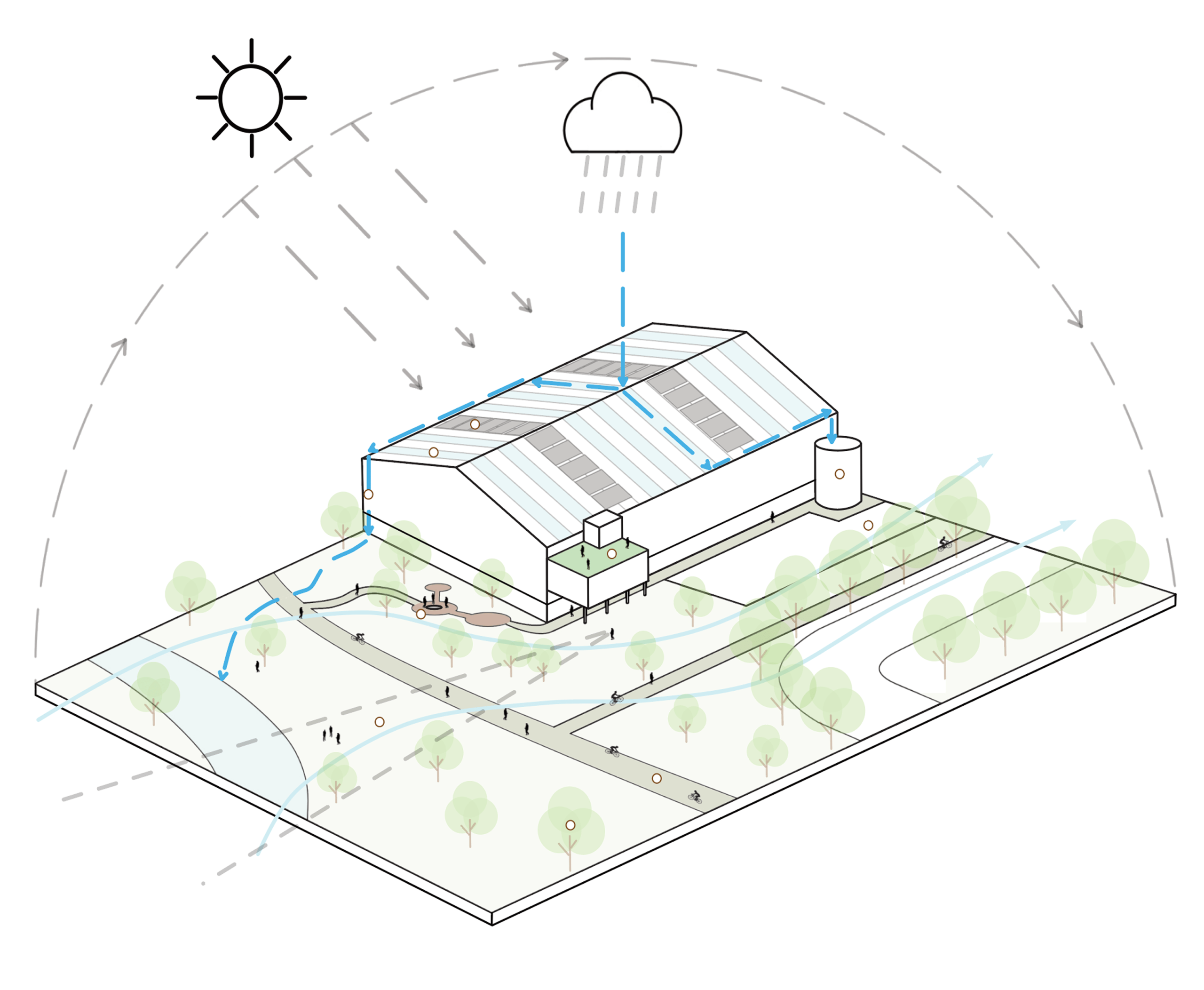 Collecting and using rainwater where possible for use in building systems and integrate into natural, sustainable water cycles.
