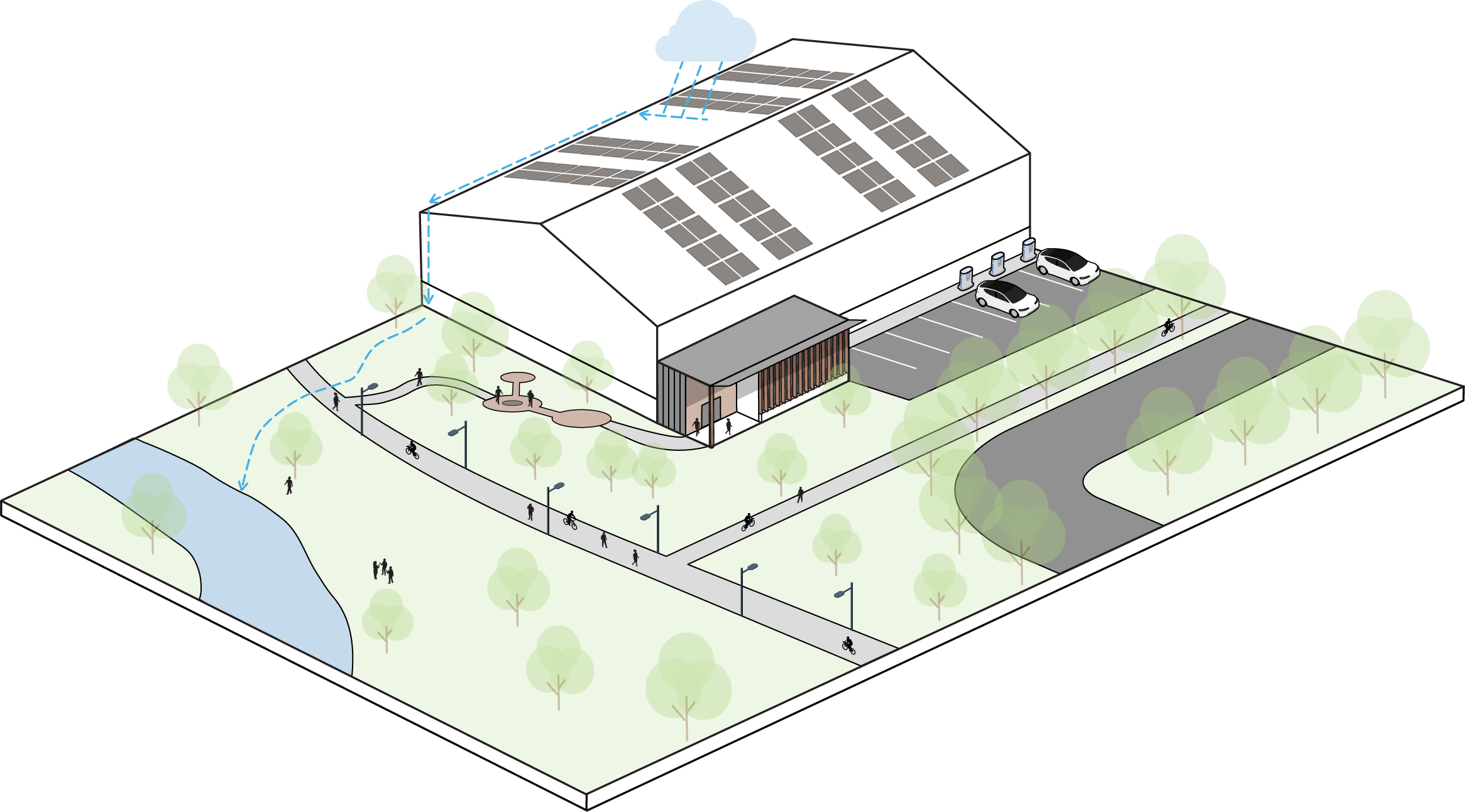 Tree species have been strategically selected and spaced to provide maximum shade.